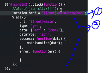 location.href 의 경우, 성공적으로 응답이 되었을 때 데이터를 새로운 페이지로 보낸다. (페이지 전환이 일어남)
