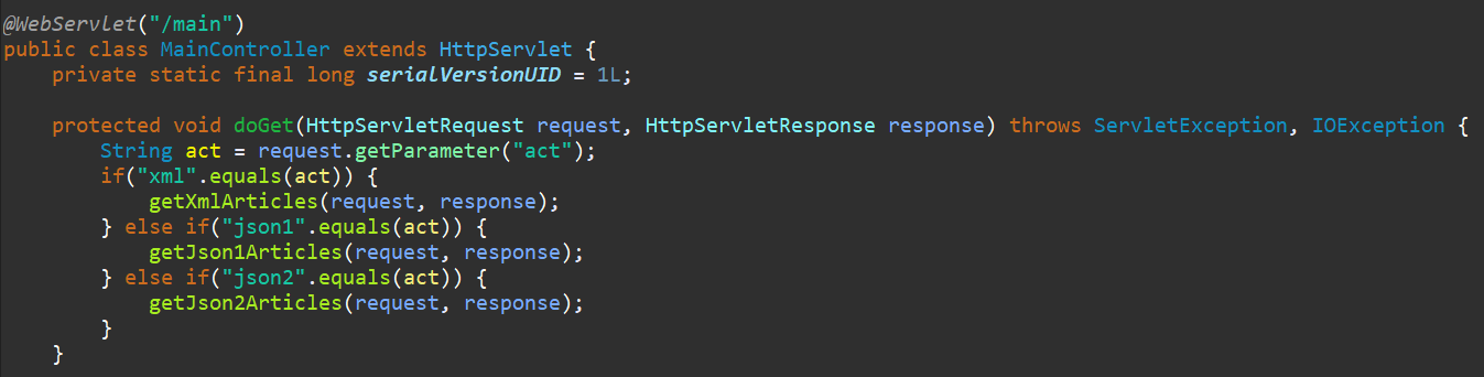 doGet 메소드에서 해당 request를 받아 getXmlArticles로 보내준다.