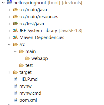 WAR가 아닌 JAR로 설정해줬다면 webapp도 생기지 않는다.