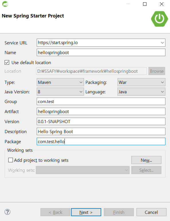 New > New Spring Starter Project