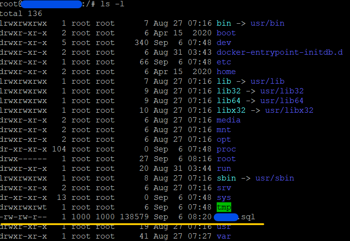 2-3. Linux → Docker 컨테이너 (MariaDB Docker 컨테이너) 파일 전송