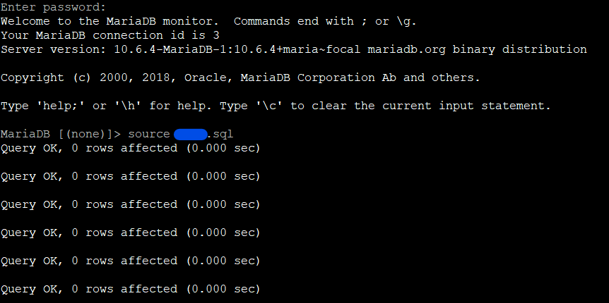 mariadb -h 127.0.0.1 -P 3306 -u root -p