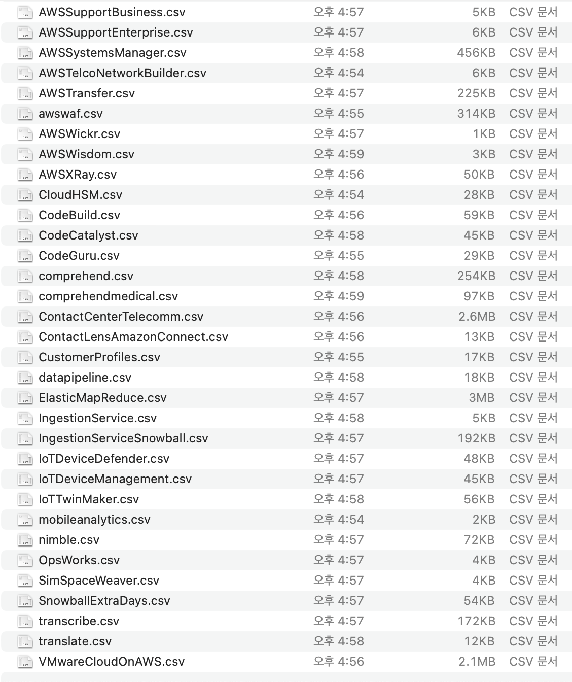 - 제안 파일 (offer file) : 모든 리전 또는 특정 리전의 단일 AWS 서비스에 대한 제품 및 가격 목록이 들어있는 JSON 또는 CSV 파일이다.