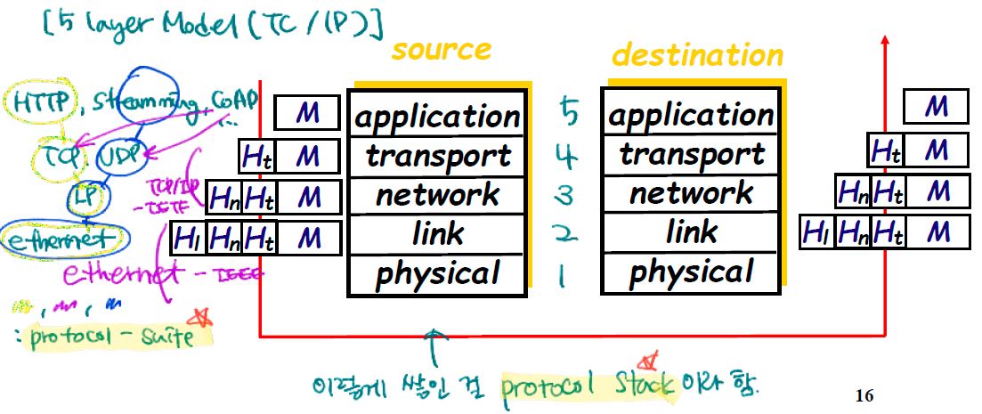 - TCP/IP 수트 기반으로 만들어진 5계층