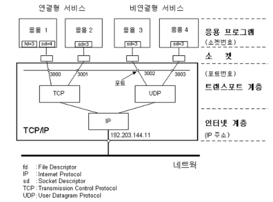- 소켓은 응용 프로그램에서 TCP/IP를 이용하는 창구 역할을 하며 응용 프로그램과 소켓 사이의 인터페이스를 '소켓 인터페이스'라고 한다.